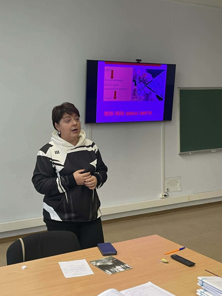 Тетяна Шептицька розповіла про зміни, які відбулись у друкованій пресі 1920-х – 1930-х років під впливом економічних і політичних чинників, ознайомила з етапами перетворення тогочасної журналістики на елемент пропаганди й спосіб легітимізації масового терору. Вона також окреслила діяльність Головліту, який як цензурний орган відповідав за ідеологічну чистоту видань. Тетяна Шептицька ознайомила студентів із біографіями, професійним шляхом, обставинами арештів і знищення журналістів Льва Величка, Михайла Биковця, Івана Ковтуна (Юрія Вухналя), які знайшли свій останній спочинок у Биківнянському лісі.