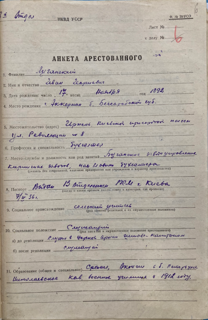 На початку березня 1938 року розпочалося слідство у справі Івана Луганського, якого радянські репресивні органи звинуватили за ст. 54-6 КК УРСР, а саме в тому, що проводить шпигунську діяльність на користь іноземної держави, починаючи з 1919 року і по 1937 рік здійснював шпигунську діяльність на користь Румунії, збираючи свідчення про кількість озброєння і спорядження військових частин, стану залізничних доріг.