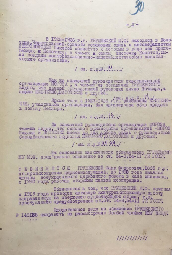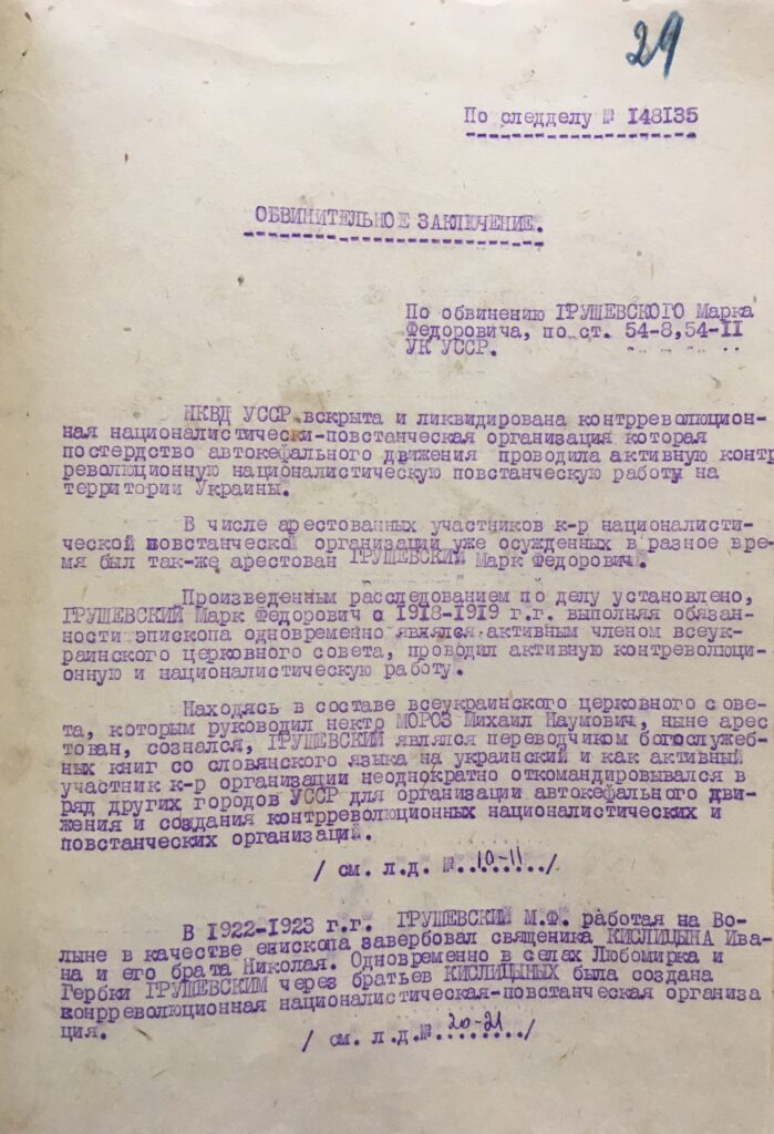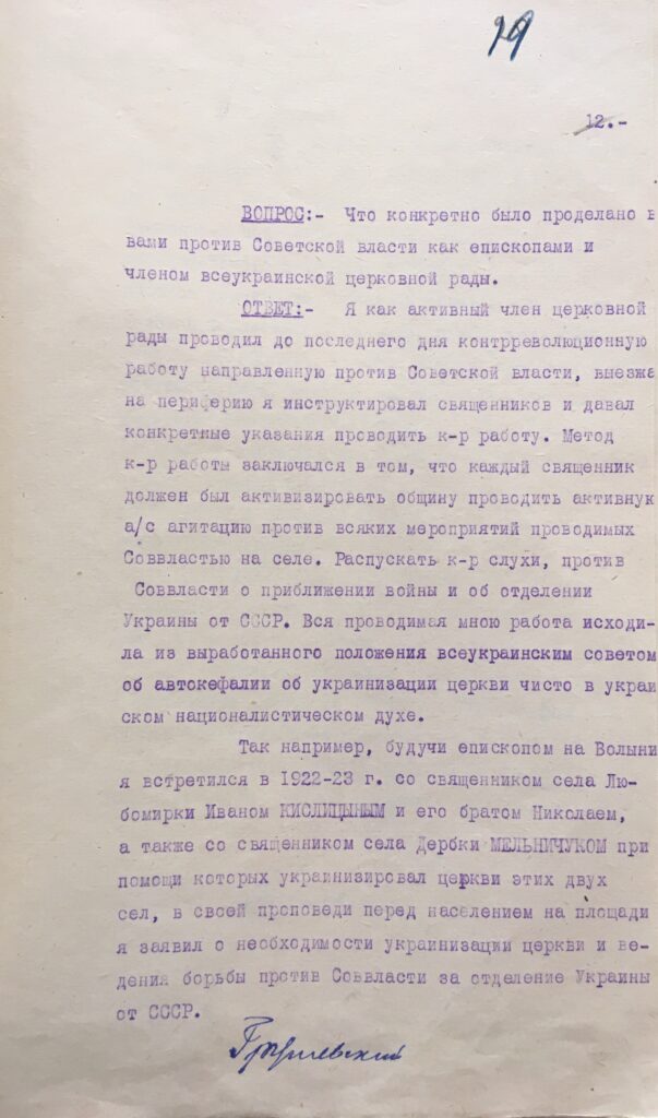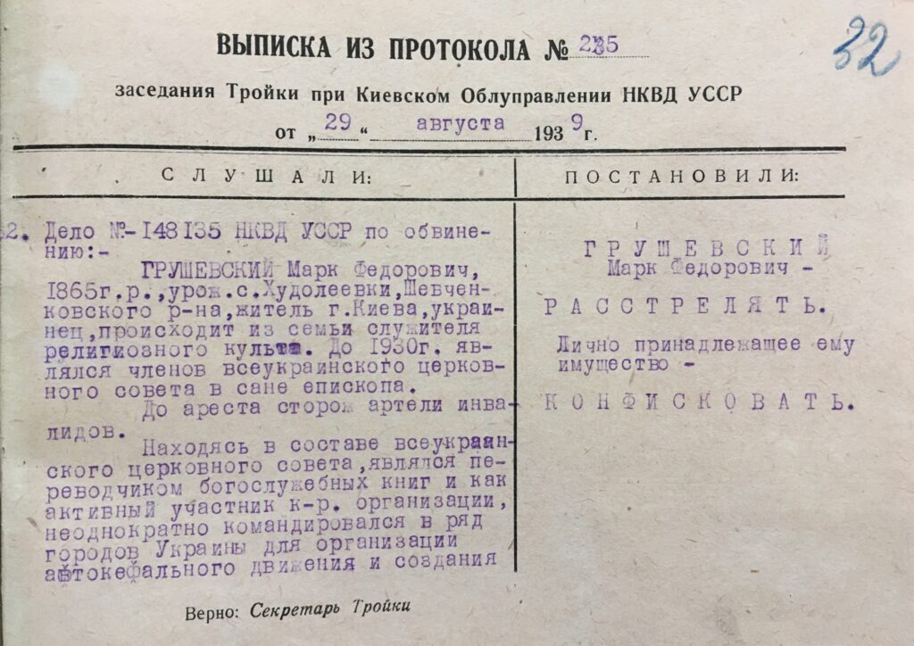 І наостанок – це був перший й останній протокол допиту. До кримінальної справи були долучені лише витяги із протоколів допиту інших членів Всеукраїнської Православної церковної ради, де вони згадували прізвище Марка Грушевського.