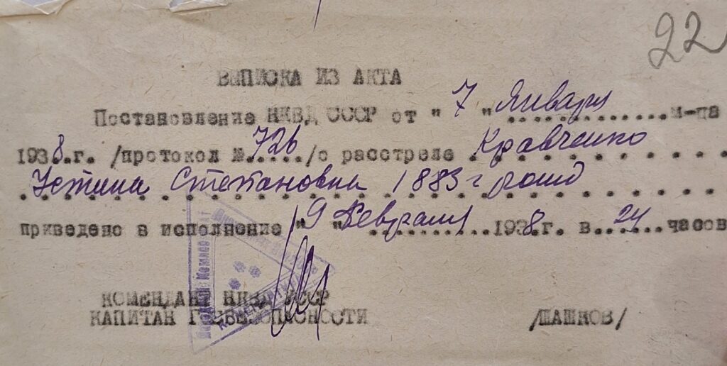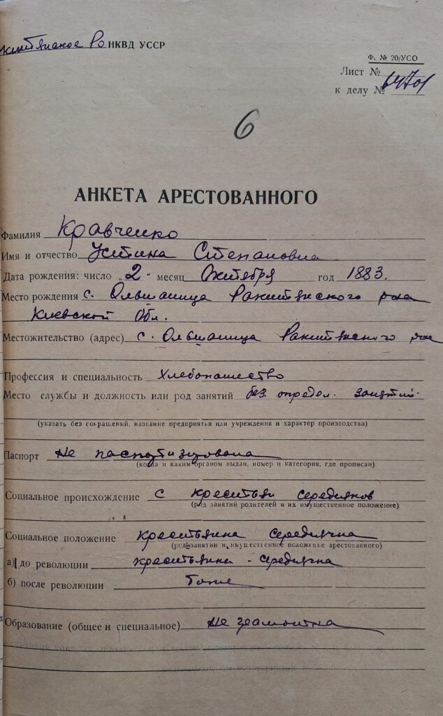 У контексті масових політичних репресій 1930-х років, коли радянська репресивна машина активно «виявляла» ворогів народу всередині країни, особливу увагу каральні органи приділяли особам, які мали зв’язки із закордоном. Наявність родичів за межами СРСР, минулі поїздки чи навіть позитивні висловлювання про життя в інших країнах могли стати підставою для звинувачень у шпигунстві або контрреволюційній діяльності. У подібних обставинах опинилася й Юстина Степанівна Кравченко — селянка з Київщини, чия біографія, з погляду радянських органів держбезпеки, містила «небезпечні» факти.